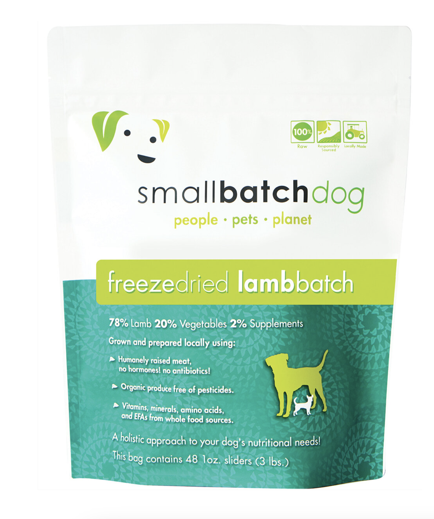 Small Batch raw freeze-dried lamb sliders are a healthy, nutritious, and delicious complete and balanced meal for dogs. Made with humanely raised and harvested, grass-fed lamb. The lamb in each bag is sourced directly from small scale U.S. farmers in California, Oregon, and Colorado, that employ sustainable practices.