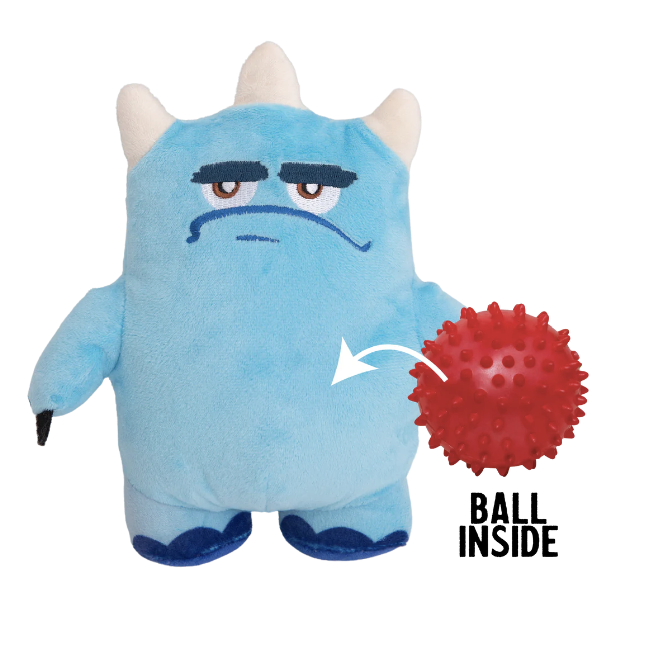 Meet Jolly Joel (2 in1 Toy) - a loving friend for your furry pet toy that never fails to spread joy. Once you get through his outter layer you will find a TPR ball inside for added chew fun. His frowny face may be deceiving, but hidden underneath is lots of love. Toys are made from recycled water bottles and contain squeaker and crinkle material guaranteed to make any pup's tail wag with delight! Toy is 8” in size.