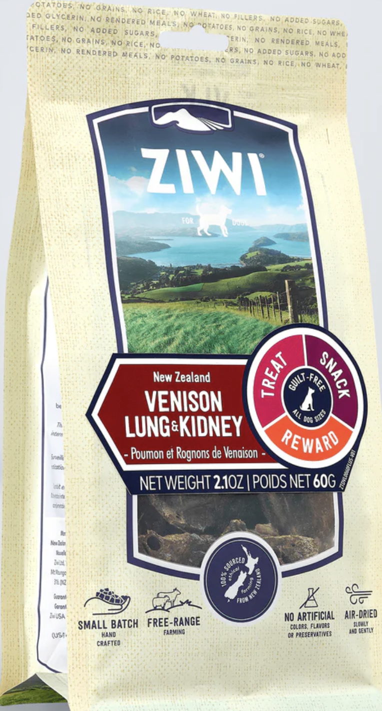 In between a treat and a chew, venison lung & kindley is the perfet reward for your dog. Break it up into smaller treats or give them a good size hunk to chew on.