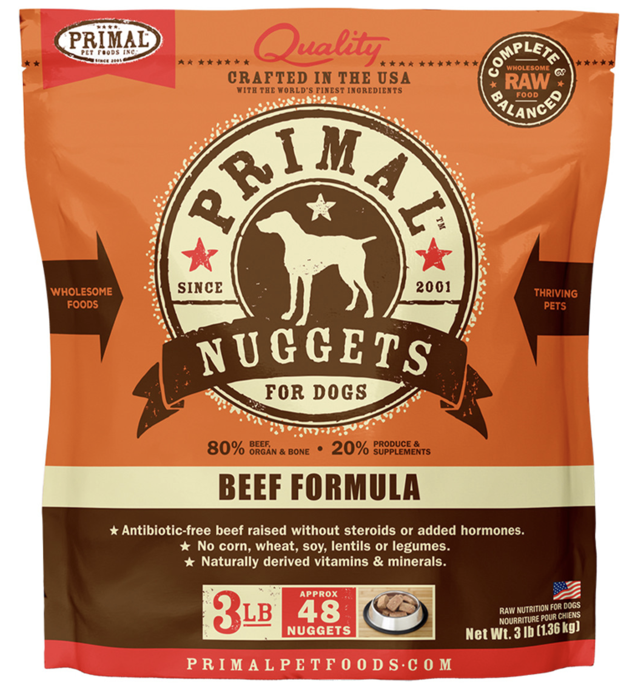 Primal Raw Frozen Canine Nuggets Beef Formula Dog Food