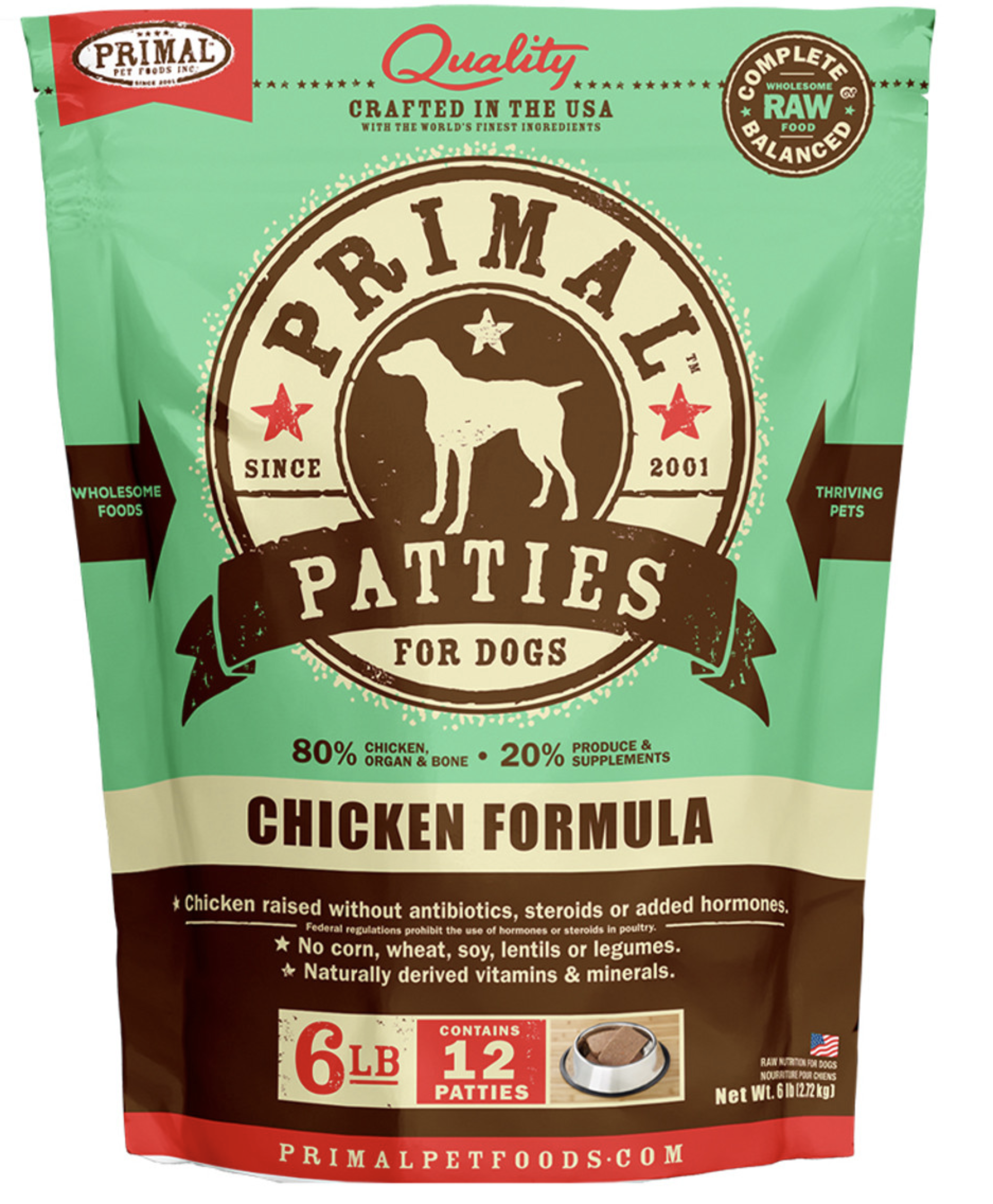Primal Raw Frozen Canine Patties Chicken Formula Dog Food