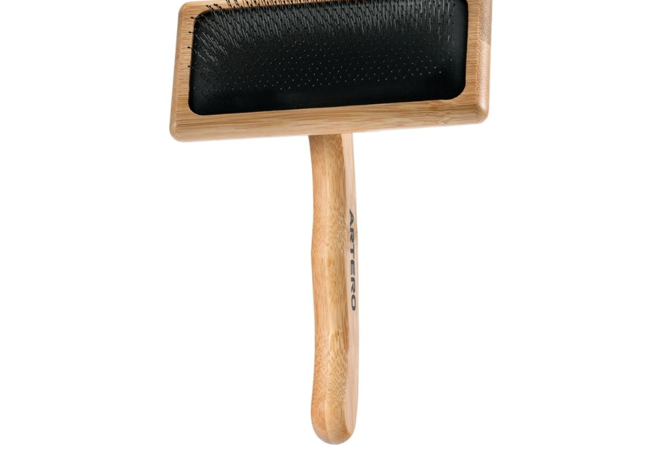 This family of slickers improves brushing. Created with fine pins that include a special finish on each pin to prevent scratching sensitive skin on dogs and cats.Available in four sizes that feature the same ergonomic bamboo handle for better grip.